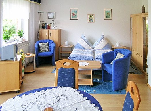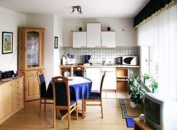 Meine Ferienwohnung (1 Zimmer Appartement) ca. 40 qm mit Doppelbett, komplett Küche, Dusch-Bad/WC, Kabel TV, Balkon, separater Eingang, liegt in einem Mehrfamilienhaus. Maximale Belegung mit 2 Personen. Nichtraucher.