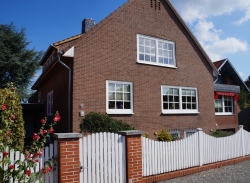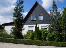 | Fewo 92 qm, App. 62 qm oder Zimmer mit Küchen. Ruhig gelegen. Wohnzimmer mit Kaminofen/Kamin, Ess/Sitzgruppe, Tel., W-Lan, 3 Schlafz. mit Doppel/ Einzelbetten, Vollküche in U-Form/Zeile, Duschbäder, eins mit Sitzwanne, WC, Sauna. Hütte im Garten, Grill, Liegewiese. Fahrräder/E-Bikes. Feld/Wald/Bus/S-Bahn nah. | |